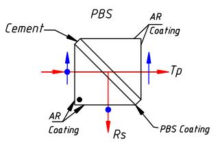 PBS Cube can be used as polarizers, beamsplitters or beam combiners. The output beam which are parallel to input beam is called p-polarized beam while the orthogonal output beam is defined as s-polarized beam.