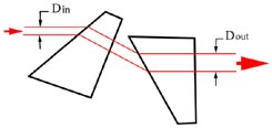 These two prisms can expand or contract the beam in one direction without any changes in the other direction. By adjusting the angles among the incident beam and two prisms, the shape of the beam can be changed. It is very easy to turn elliptical beam into circular beam.