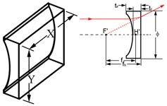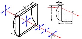 Cylindrical lenses used to provide focusing power in one section only. For illumination or detection of light from line sources. Also used to anamorphic compression of beams and images.