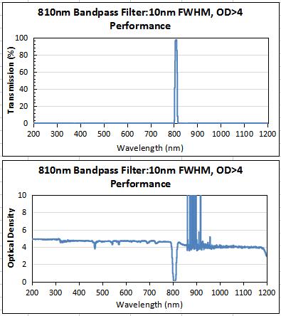 Bandpass filters are optical elements that are designed to transmit a specific spectral band with high efficiency, while reject others. The characteristics of the bandpass are controlled by multilayer dielectric coatings.
